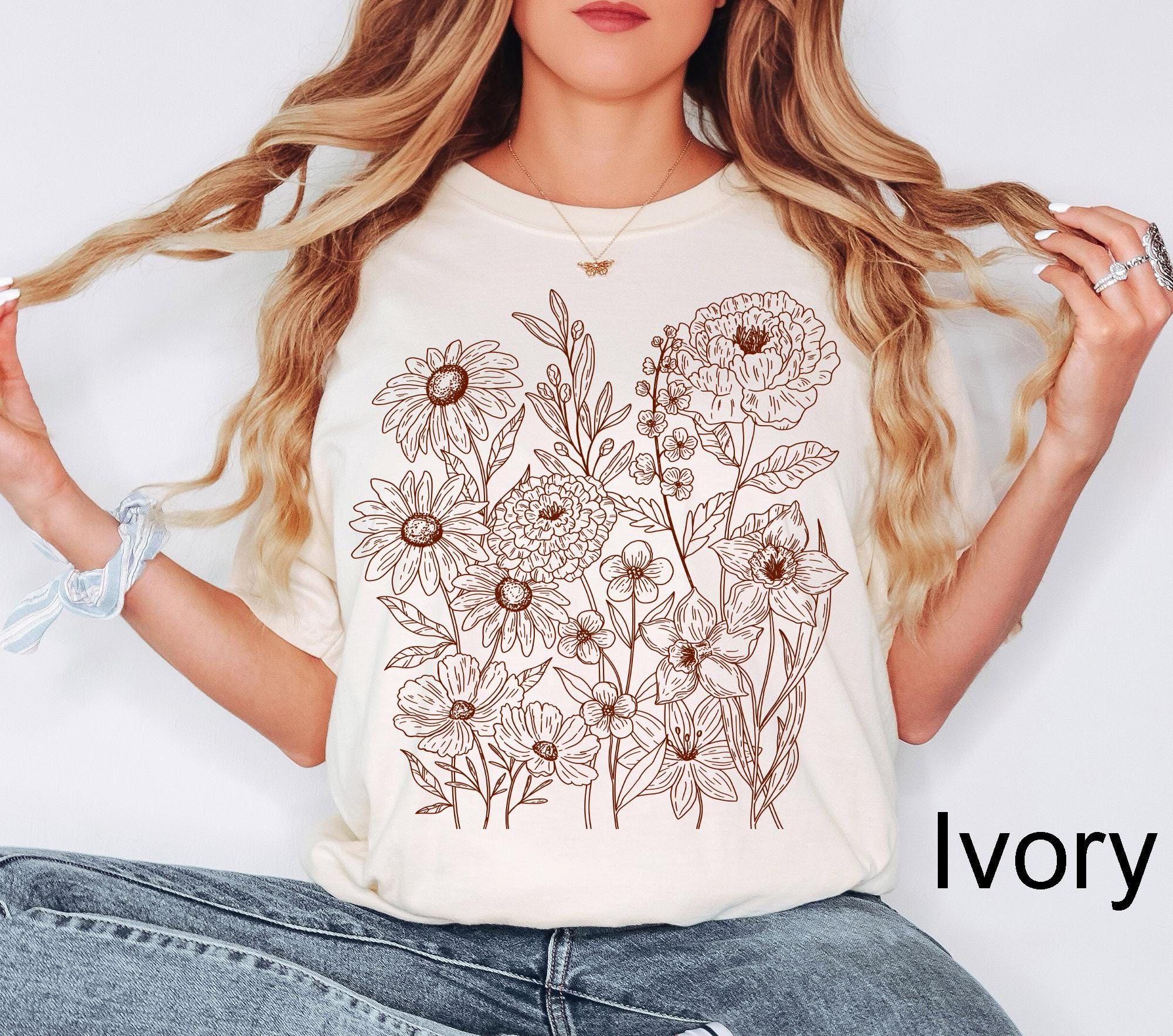 Vintage Pressed Flowers Shirt, Boho Cottagecore Tshirt, Botanical Floral Tee, Wildflowers T Shirt, Gift for Gardener, Floral Shirt